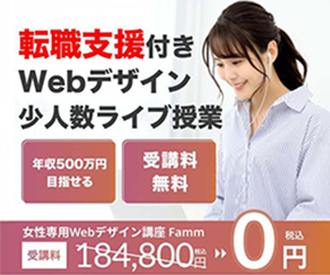 Famm WEBデザインスクールは、WEBデザインの基礎を学びたい人に向けたオンラインスクールです。
